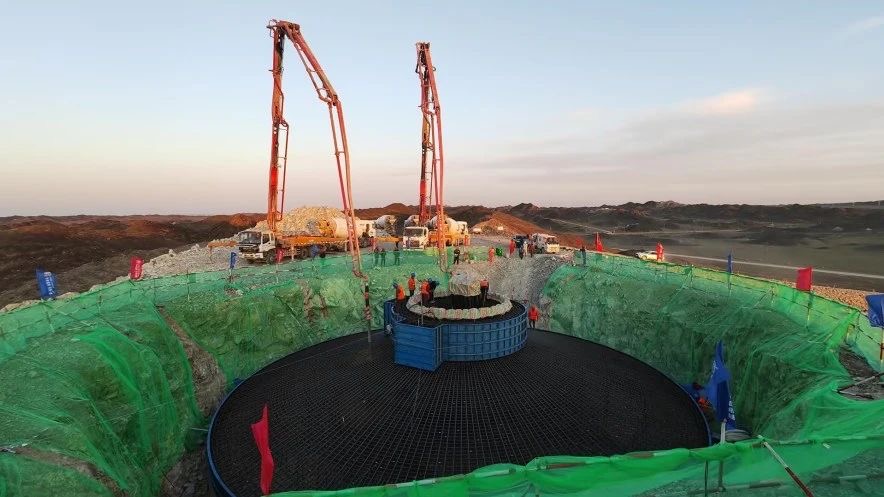 站在海拔千米的荒灘上眺望,天山北麓的狂風(fēng)裹挾著砂礫,在奇臺(tái)縣連綿起伏的剝蝕丘陵間呼嘯穿行,13座直徑23米的巨型風(fēng)機(jī)基礎(chǔ)即將在此扎根。